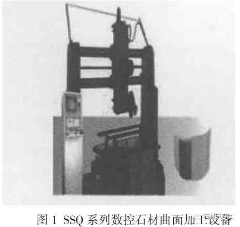 圖1為山東大學石材工程技術研究中心研制的SSQ系列數控石材曲面加工設備。該設備采用了可靠的三坐標數控系統,刀具軸水平布置,鋸片或磨輪垂直切割。該設備可加工任意曲率、形狀的內、外曲面。