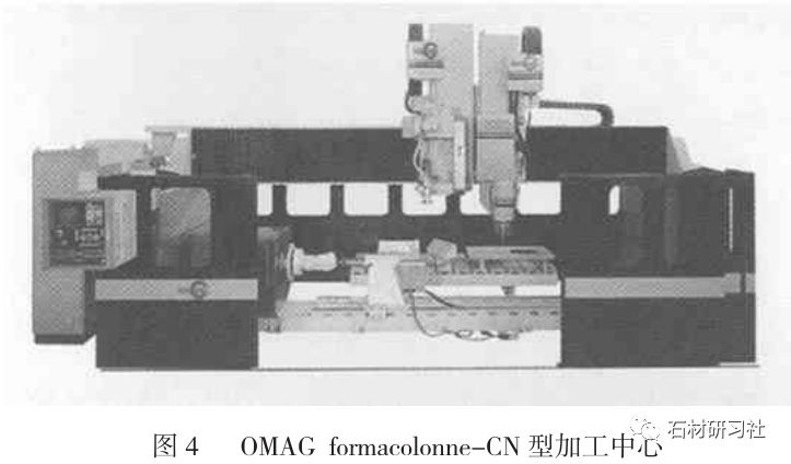 圖4 為意大利OMAG公司設計的formacolonne--CN型加工中心,該加工中心采用4軸聯動數字控制加工技術, 同時配有兩個工作頭。